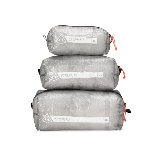 Zippys pack organizers are here to fool-proof your ultralight backpacking setup with 1. 2. and 3L volume options. sized right and easy to get into for things like hygiene items. charger cables. bike-packing tools. ski hardware. your water filter. cookware bits and pieces. etc. They're constructed with 100% waterproof Dyneema® Composite Fabrics and a waterproof zipper. adding another layer of protection against moisture.